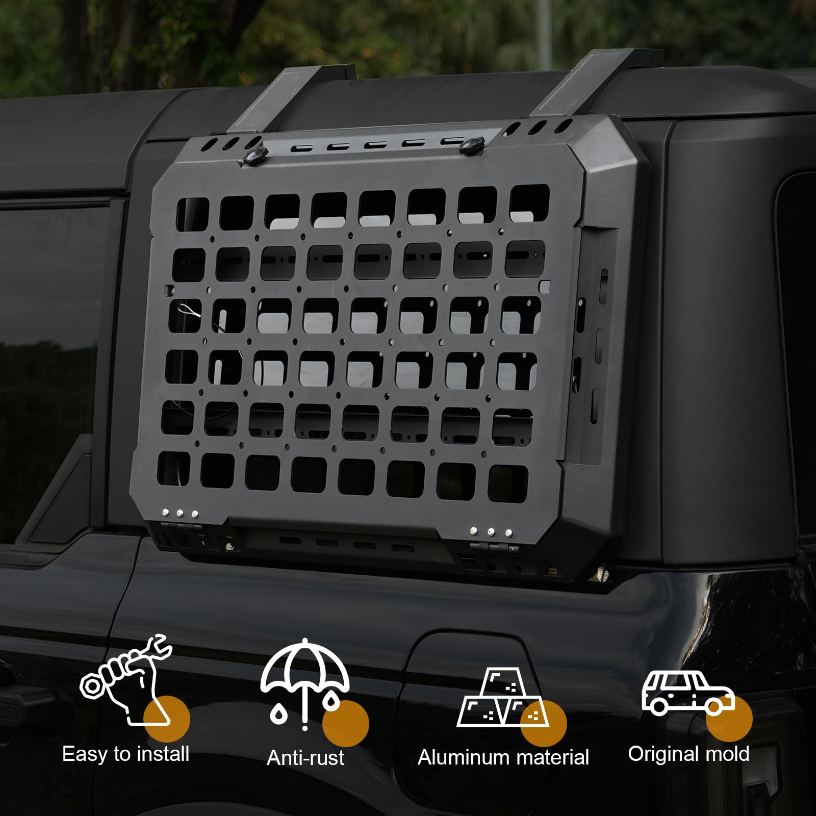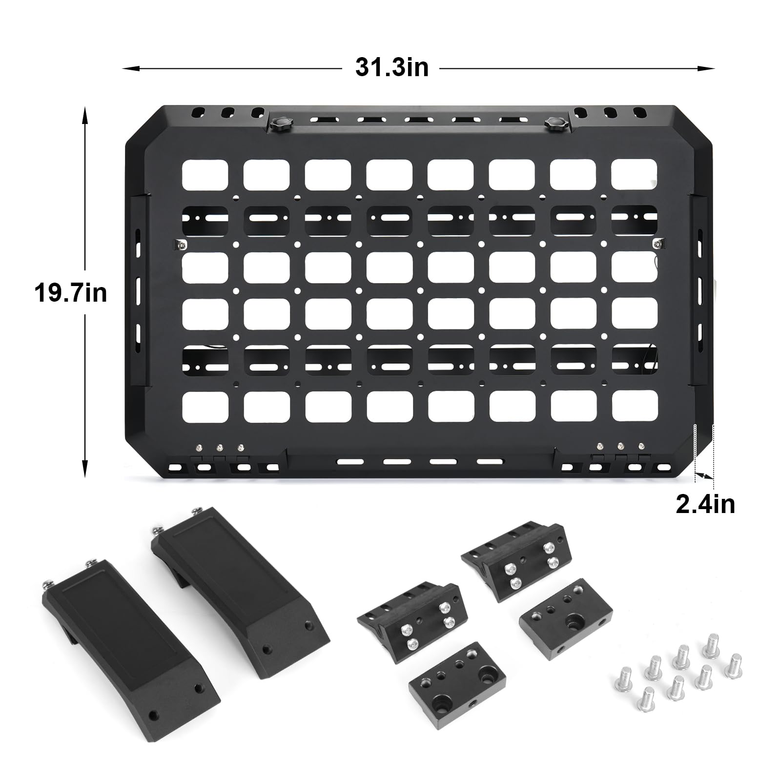 • HEAVY-DUTY BUILD WITH INCREASED THICKNESS - Constructed with a reinforced 0.19-inch thick aluminum panel, this molle system is strong enough to support heavy off-road gear and tools. Measuring 31.3’’ x 19.7’’ x 2.4’’, it fully covers the rear window, combining rugged functionality with a sleek, practical design.